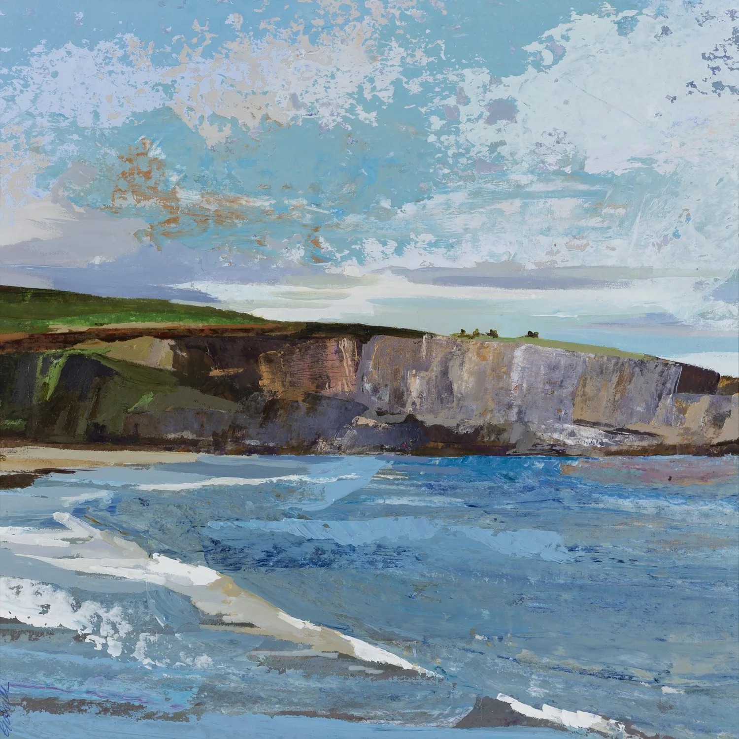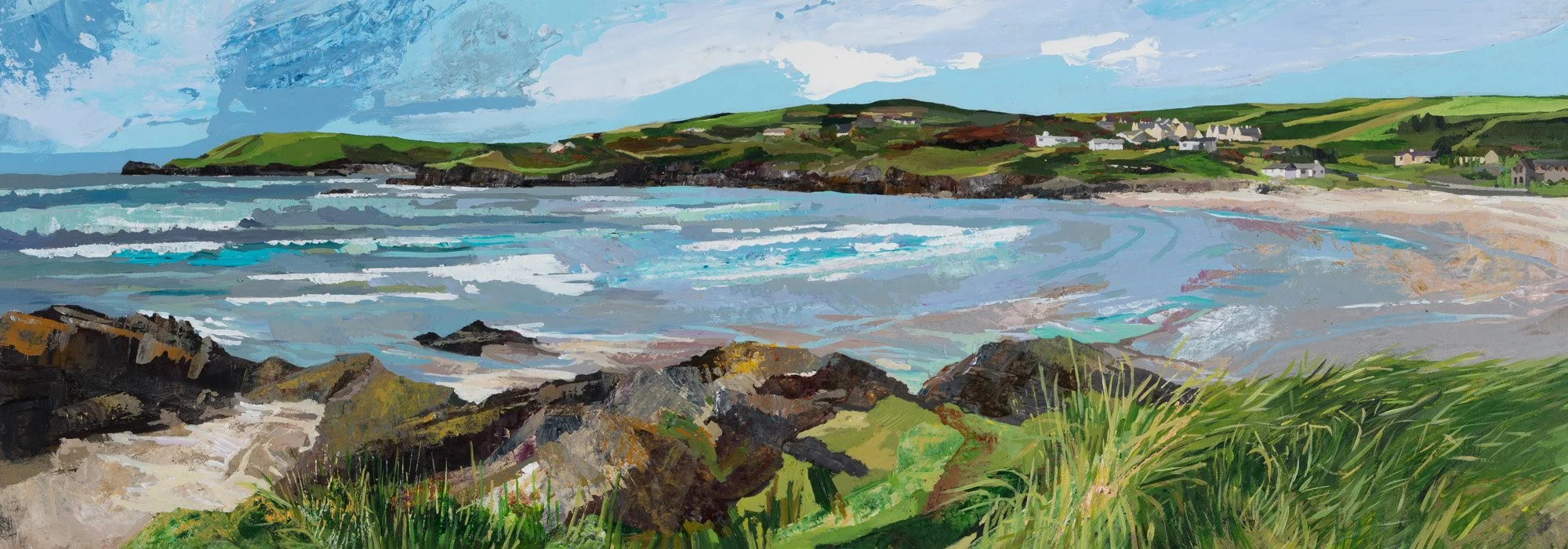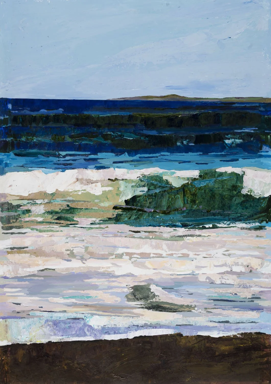The seascapes collection is an inspired series of paintings that capture the beauty, variation and depth of Ireland’s coastline and delve into the dynamic relationship between the sea and the shore. Featuring much loved and known sites along Ireland’s coast such as Inchydoney, Barleycove, Cape Clear and Sherkin Island, as well as more easterly scenes such as Howth Harbour, Dun Laoghaire and Bull Island. Using materials such as acrylic paints, chalk pastels, and oil pastels, the artist brings to life the vastness of the Atlantic and its interactions with the coastline of our island nation through a detailed exploration of the natural world. Each original artwork is thoughtfully framed under glass in a solid wood white frame, ready to be displayed. If you would like to view a painting in person, please get in touch via the link below.