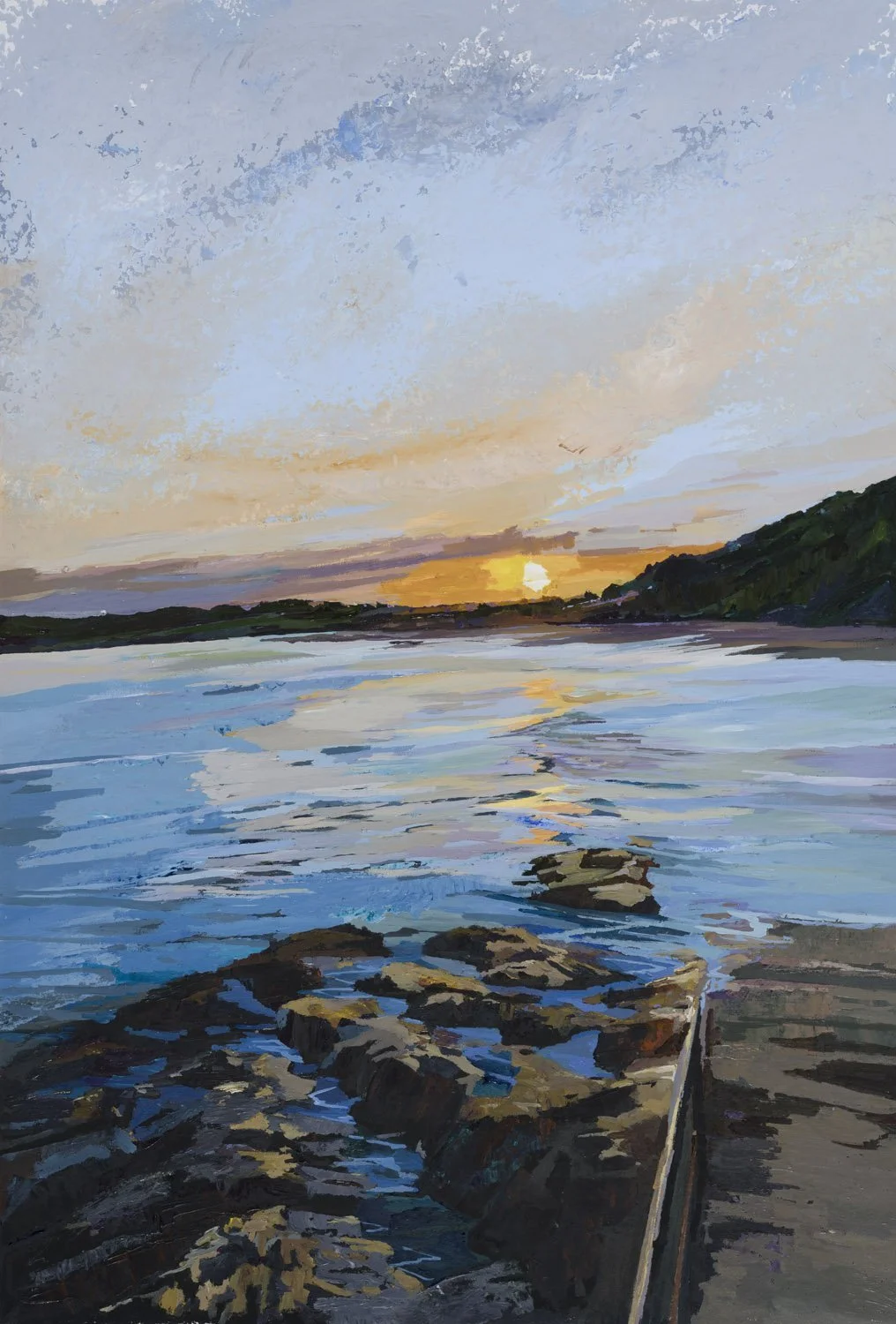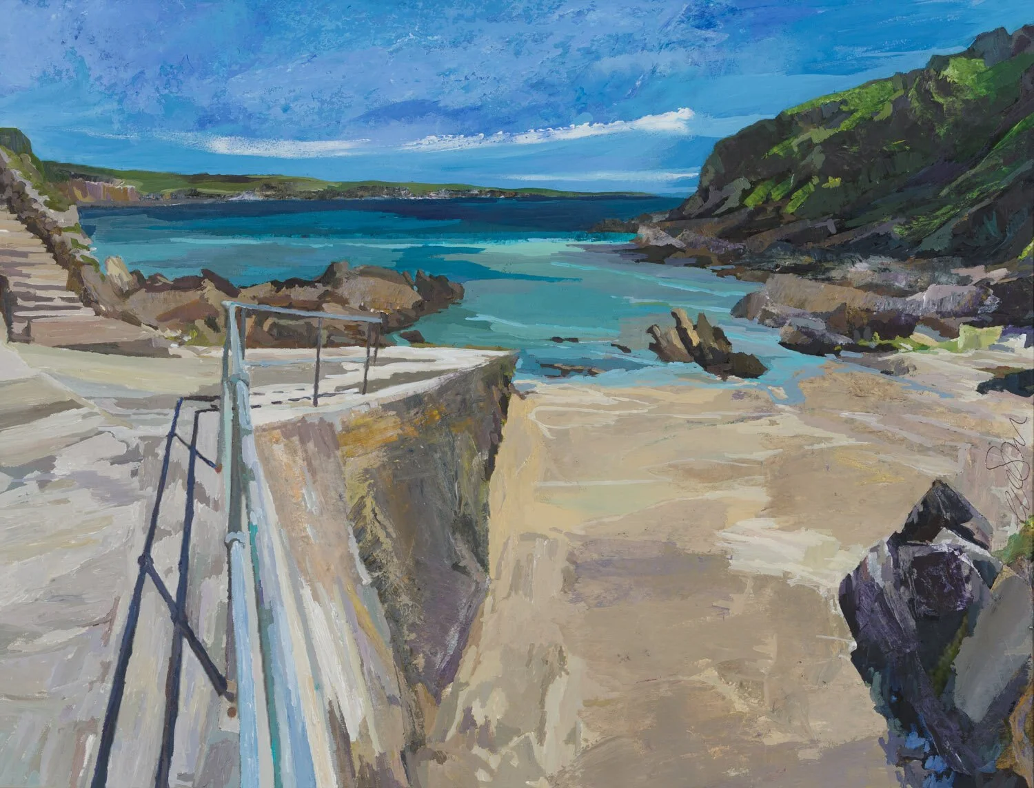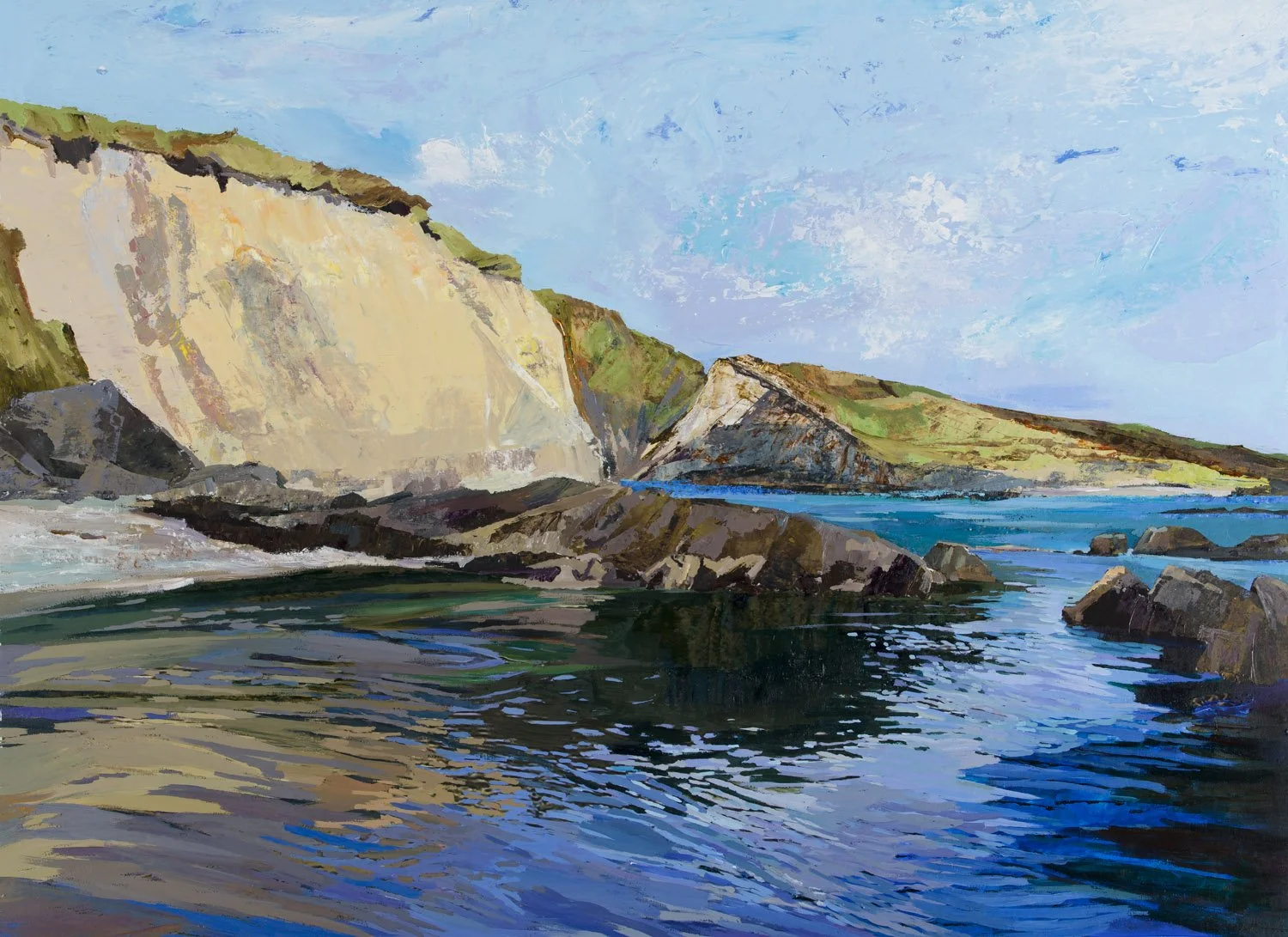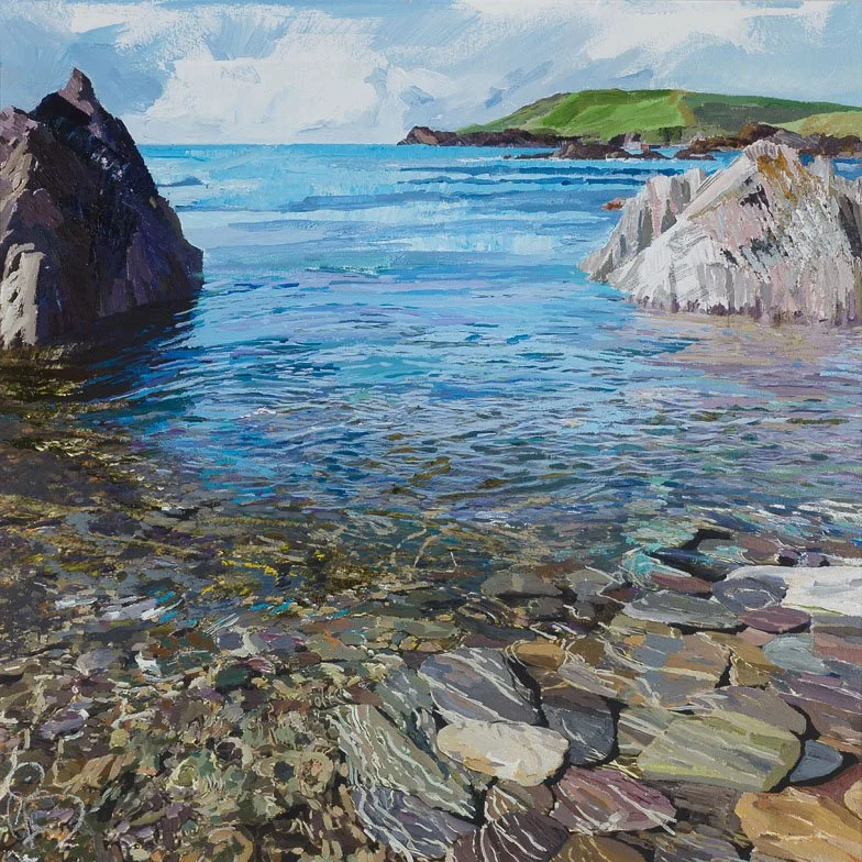 The seascapes collection is an inspired series of paintings that capture the beauty, variation and depth of Ireland’s coastline and delve into the dynamic relationship between the sea and the shore. Featuring much loved and known sites along Ireland’s coast such as Inchydoney, Barleycove, Cape Clear and Sherkin Island, as well as more easterly scenes such as Howth Harbour, Dun Laoghaire and Bull Island. Using materials such as acrylic paints, chalk pastels, and oil pastels, the artist brings to life the vastness of the Atlantic and its interactions with the coastline of our island nation through a detailed exploration of the natural world. Each original artwork is thoughtfully framed under glass in a solid wood white frame, ready to be displayed. If you would like to view a painting in person, please get in touch via the link below.