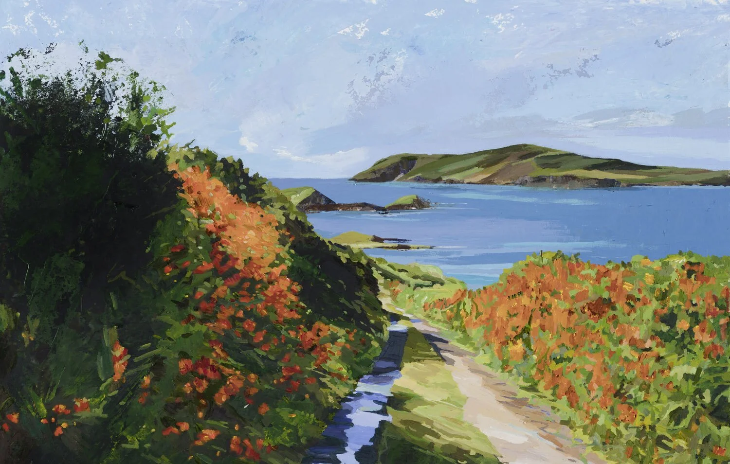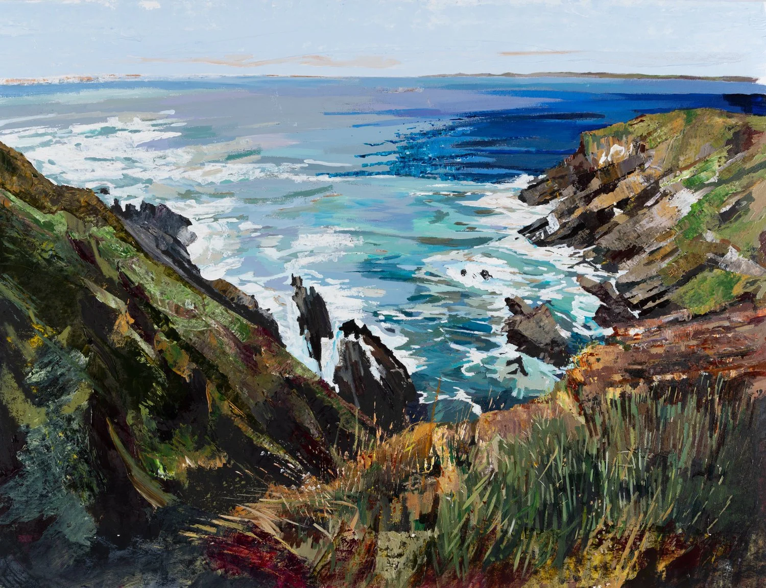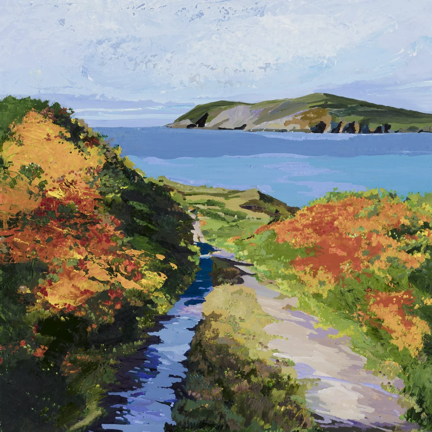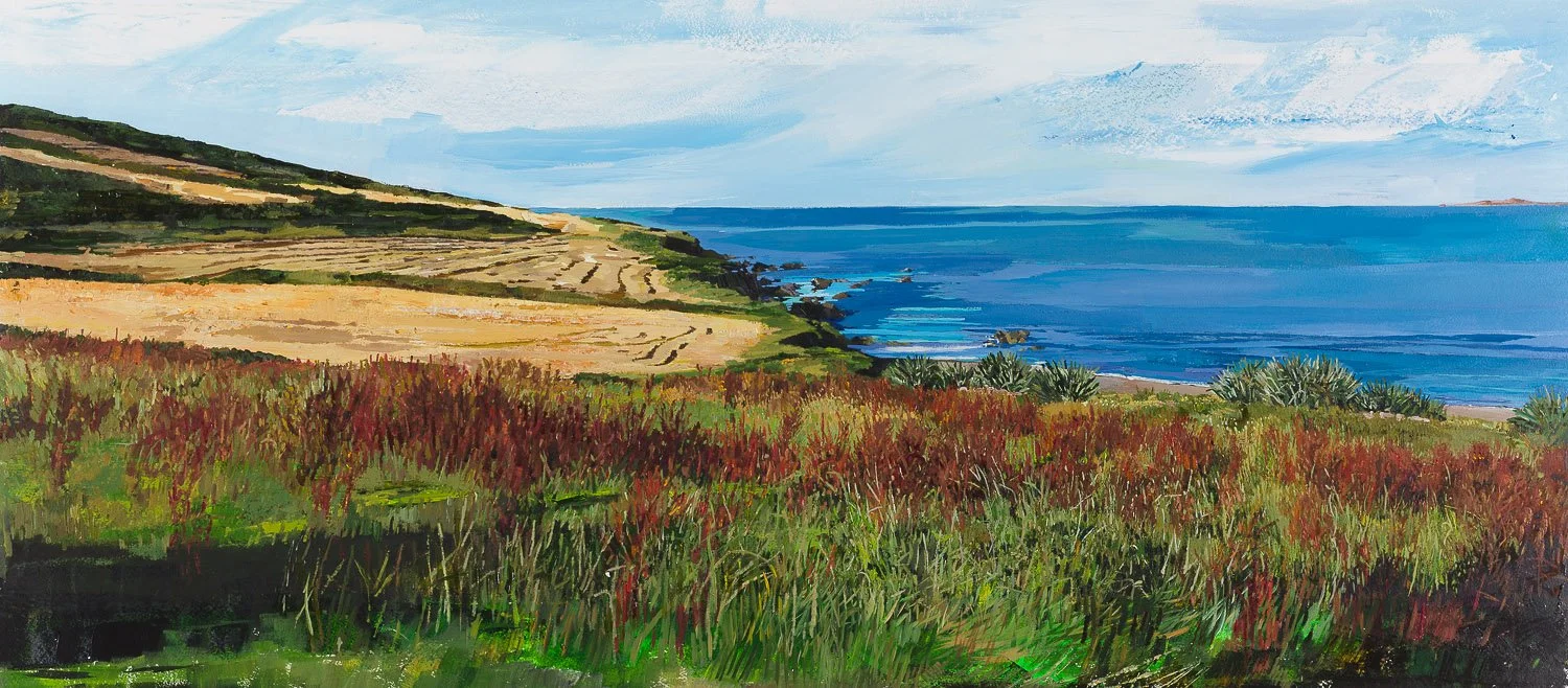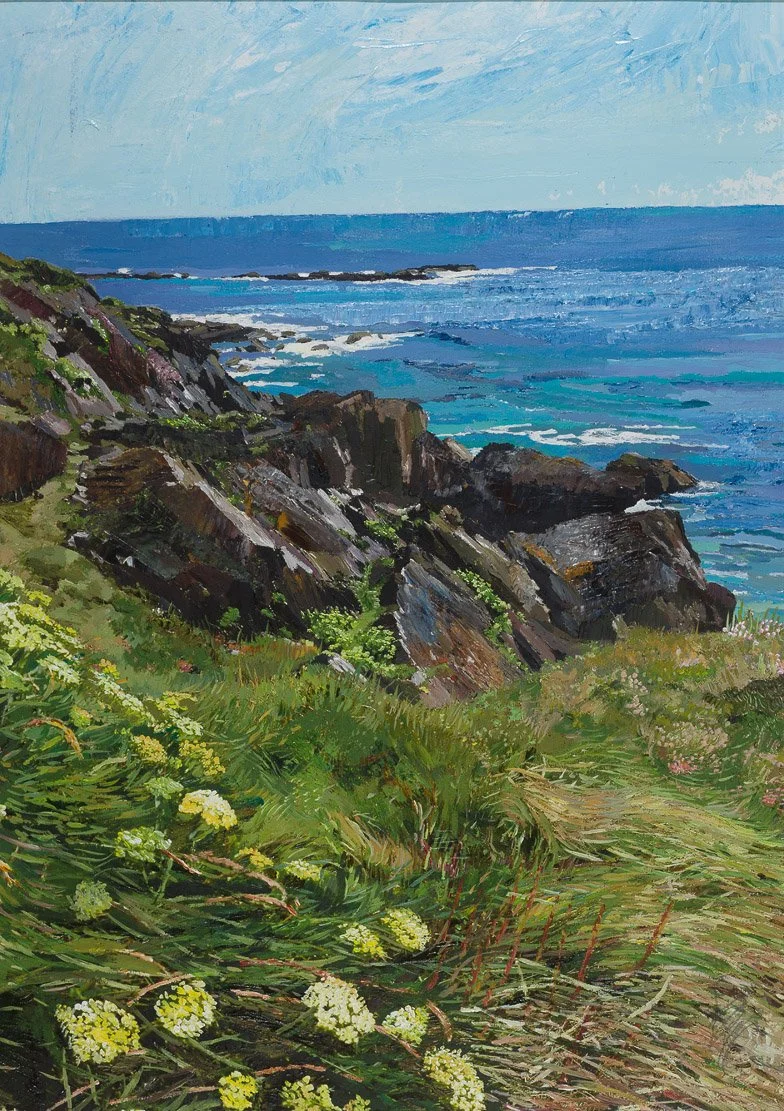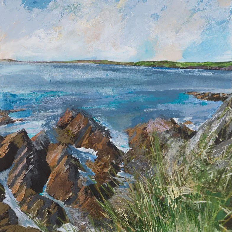 Looking East towards Galley Head from Owenahincha Framed size 67cm x 80cm. Since shipping costs for originals vary greatly depending on the destination, please use our inquiry form below to speak with Geraldine directly. €700