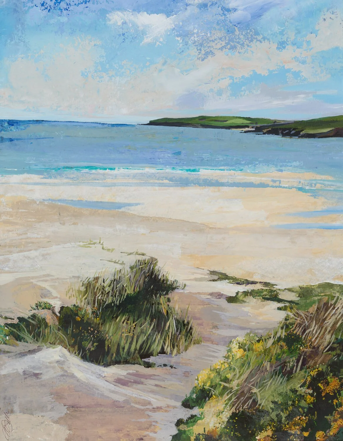 Barleycove Golden Sands Framed size 42cm x 62cm. Since shipping costs for originals vary greatly depending on destination, please use our enquiry form below to speak with Geraldine directly. €700