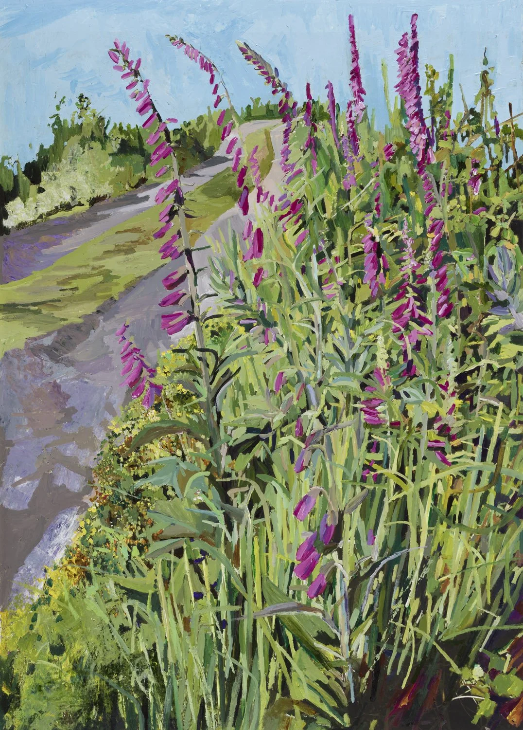 Roadside Foxgloves Framed size 67cm x 80cm. Since shipping costs for originals vary greatly depending on destination, please use our enquiry form below to speak with Geraldine directly. €700